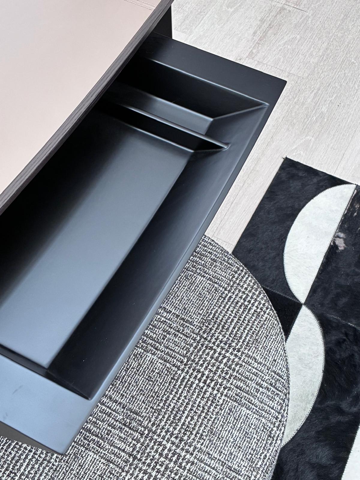 Lo scrittoio Poliform modello Mathieu risulta contemporaneo grazie alla silhouette slanciata ed i profili delicati. Eleganti e discreti gli accessori inseriti, il piccolo cassetto sottopiano e lo specchio, che lo trasformano in un complemento perfetto anche per la zona notte.